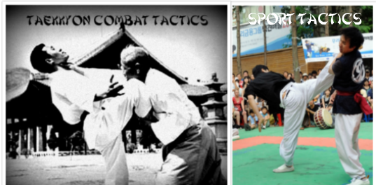 A slight change in the game version of Taekkyon techniques can create deadly kicks and strikes, especially when these strikes are delivered to the opponent’s vital areas. During a sporting match, however, hitting the vital parts is strictly prohibited. Combat-style Taekkyon is often used today in street fights. In combat, some of the game like moves are used. The main difference though are the target areas and the power used. Pressure point techniques, eye gauges and locks are common. The dance like steps and constant motions of the hands distract the opponent, setting up for a kick or sweep. Unlike Tae Kwan Do, in Taekkyon combat, flying or spinning kicks weren’t often used. Instead, low kicks to the shins or knees, sweeps and trips, and direct push kicks to the body were more common.